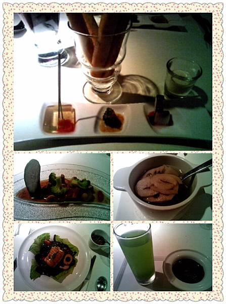 精緻前菜~藍莓山藥+彩椒水蓮+蒟蒻蕃茄+迷迭香火柴麵包 麵包醬(蛋) / 藍莓醬