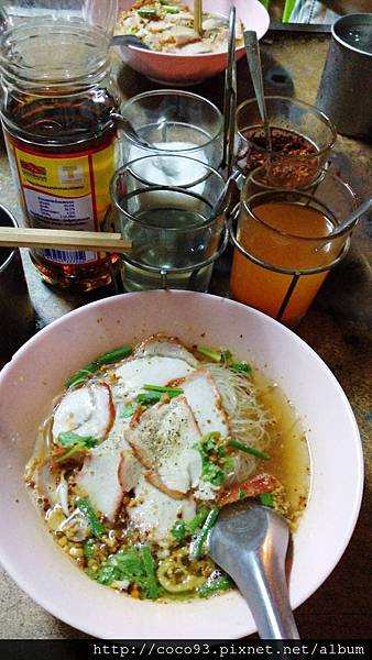 我吃2碗麵 左邊是辣的 來泰國最常講的是"角條啊來"(台語) 就是"麵好吃" 我一個人去點餐 就跟老闆講"角條" 他就會要你選粗麵細麵 用比的就好 很簡單