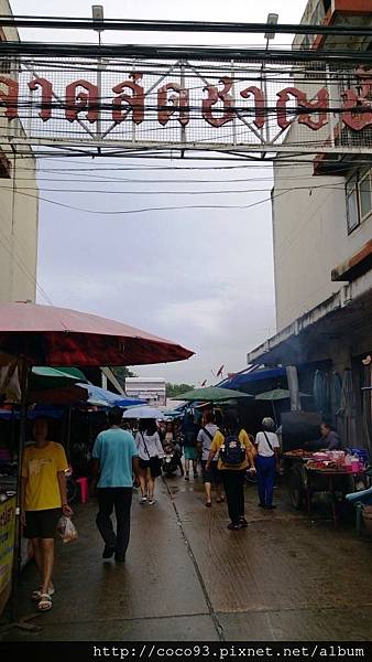 來到近年來超夯的泰國景點~"美功鐵道市場"時 正下著颱風雨 我的陽傘起不了什麼作用 淋濕了半身 臉上的淡妝也幾乎花了.....