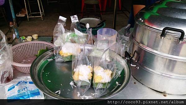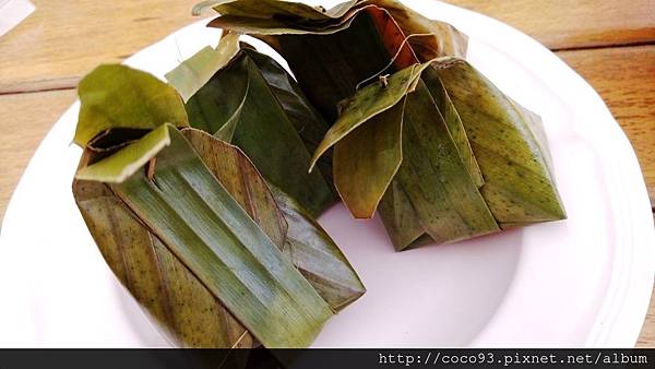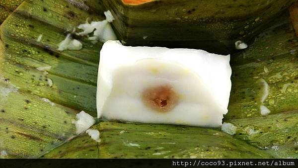 吃起來很像台灣的粄粽 內餡是鹹的椰肉絲 好特別