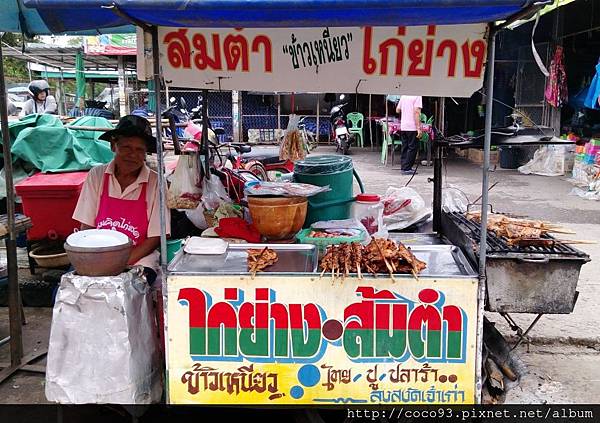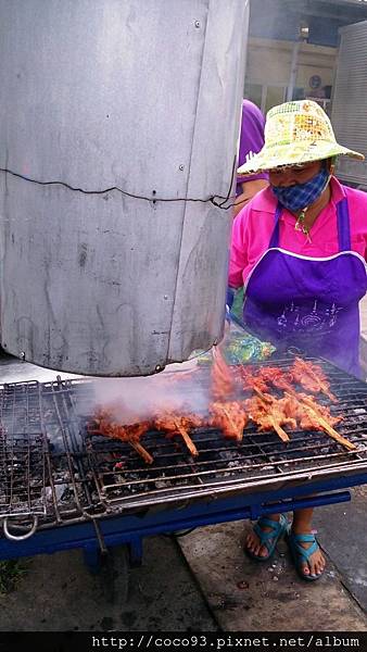 要走去夜市吃飯 途中看見燒烤攤 雞肉串約$10~20/串 買來吃 肉很嫩 味道不錯 但吃不出來是雞肉的哪個部位 搞不好不是雞肉........