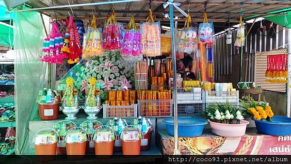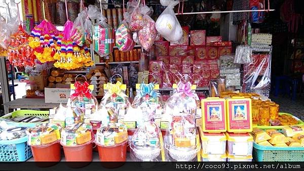 當地去廟裏拜拜用的供品籃/桶/塔 琳琅滿目的各式包裝裏 有各式各樣的食品及日用品 很有趣