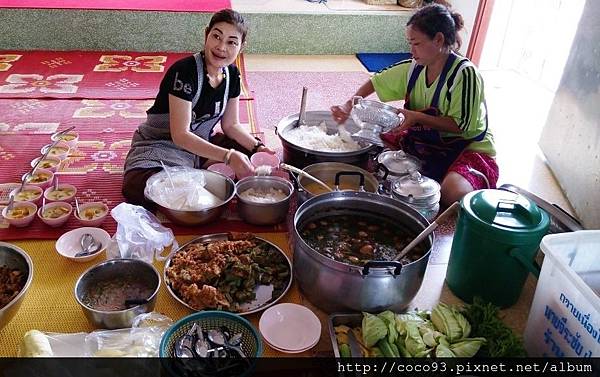 這天上午來到泰國佛寺祭拜N妹的媽媽 N妹賣豬肉 但卻開BENZ的表姐一早就來和外燴師傅配搭料理 她可是料理達人喔