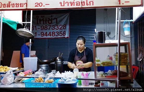 宵夜攤 販賣類似燒餅油條及泰式豆漿$15(忘了拍 外觀像泰式奶茶的顏色)之類的