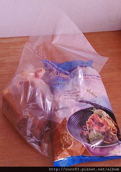 我分到一小包成品 是左邊那包珍貴的泰式辣椒醬 嚐起來真的是辣界的XO醬 可惜吃小辣的我無福消受 轉送給愛吃辣的恩爺奶他們