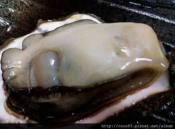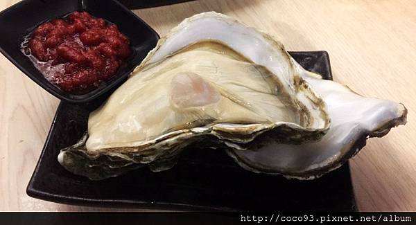 [不讓你睡生蠔]沾上味道沒有很鹹的五味醬,濃濃的海洋味瞬間佈滿味蕾,毫無一般生蠔的腥味,口感好咕溜喔!男人必點