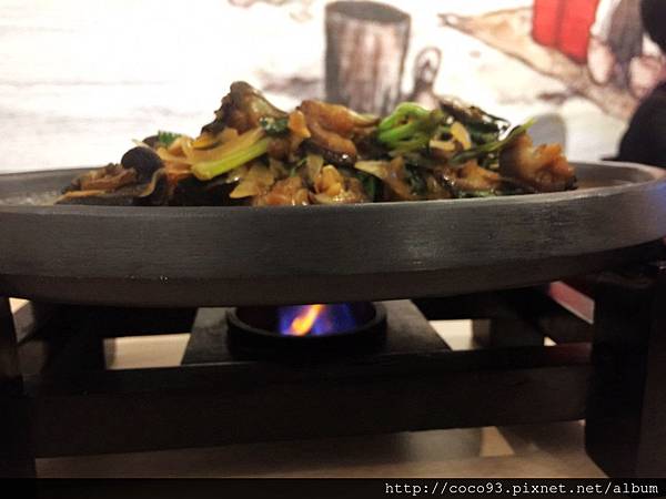 [石板野生螺肉]$200,也是我愛吃的菜之一,端上桌時火還燒著呢