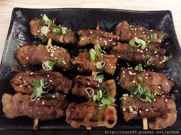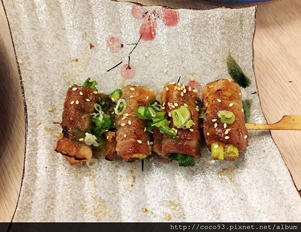 恩恩很喜歡吃串燒,又點了串[豬肉蔥捲]$35給他吃,豬肉和牛肉一樣烤的香嫩