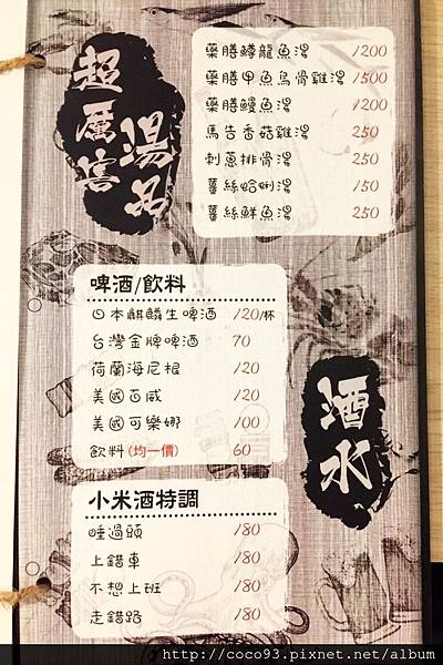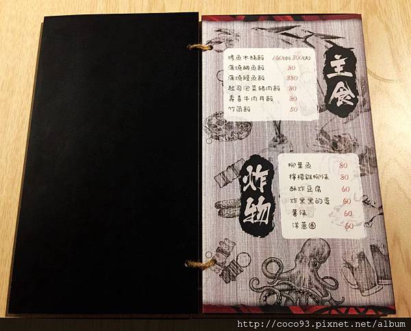 內頁圖案是餐廳內主打的<串燒.海鮮.酒場>圖案+直白的餐點項目~"超厲害湯品",哈哈