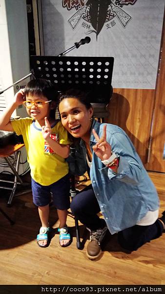 等美眉唱完,還要恩爸比幫他拍合照,害羞的直抓頭呢(像不像柯P上身)
