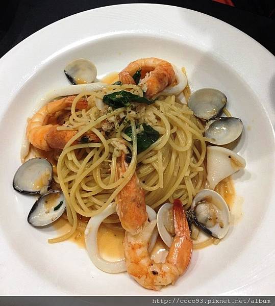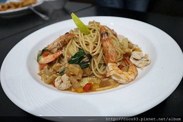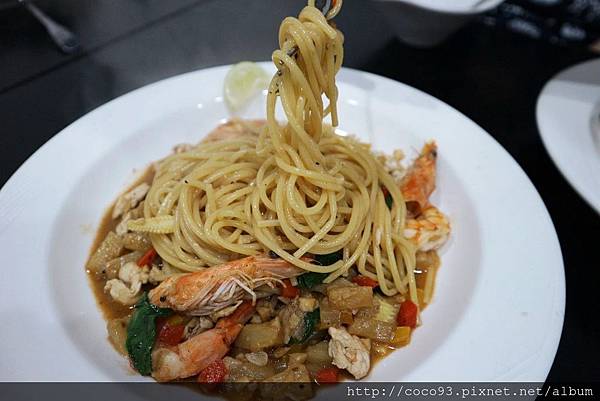 因為<鳯梨檸香雞肉鮮蝦義大利麵>實加太鮮美好吃,因此又加點2盤海鮮類義大利麵,很大胃吧