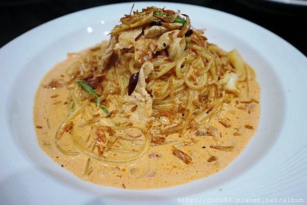吃到這~我們2姐妹已經9分飽,但硬是再追加一盤不同風味,也是「椰芭森林義麵坊」獨創特調的<粉紅醬風味~粉紅櫻花蝦義大利麵>$145
