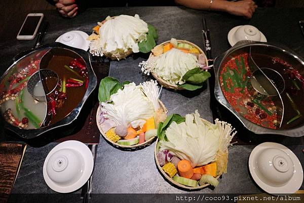 每人一份<五彩時蔬盤>,以新鮮蔬菜為多,餃丸類很少,偏向健康養生(因座位有限,和另一組客人併桌)