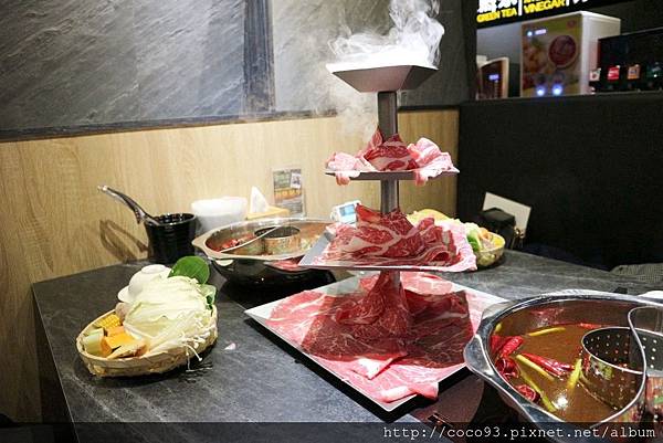 <蓋世肉塔>由"極黑牛小排"跟"殿堂級霜降牛"組成的豪華牛肉拼盤,紋理細緻的油花搭配紅豔的牛肉原色,看起來讓我們垂涎欲滴,加上份量還蠻多的,我們都好想趕快涮來吃個過癮!