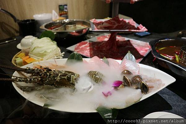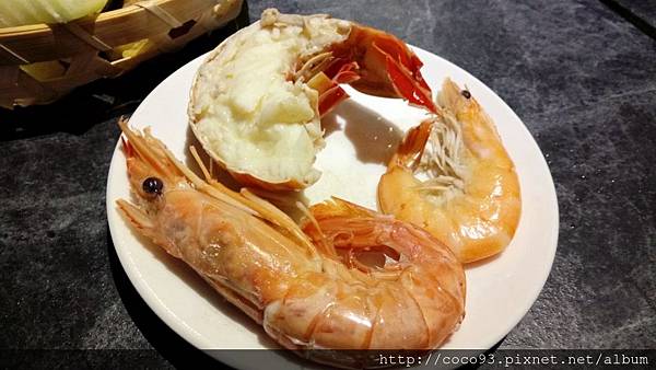 顧著吃人間美味的牛肉,一不注意,把"貝里斯龍蝦"放在火鍋裏煮太久了,好險,肉質吃起來厚實香甜,仍然多汁,沒有"縮"起來