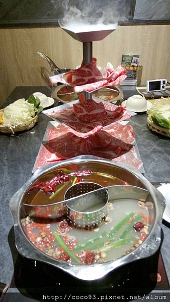 果真是全台首創,號稱"鍋界最強~360度無死角"的<蓋世肉塔>上桌煙霧秀