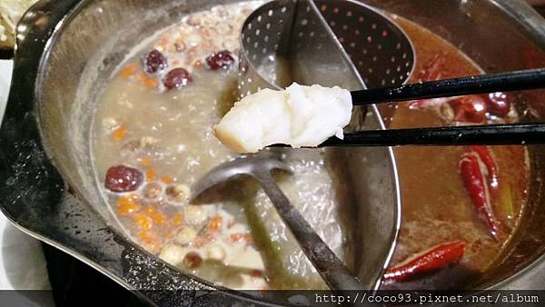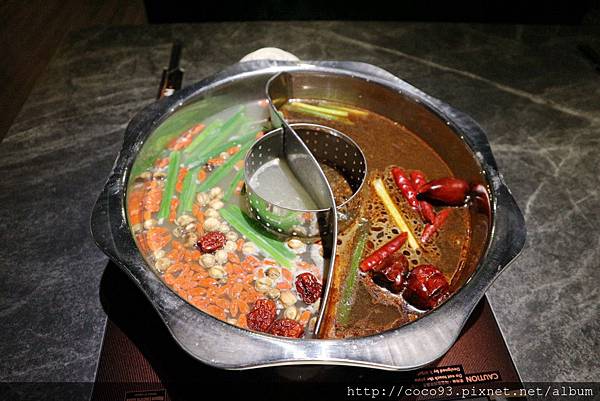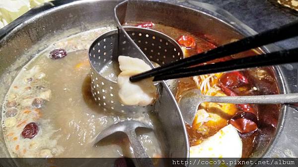 <四川麻辣>(微辣),沒有一般麻辣湯的"麻&重鹹",是淡淡的花椒味,不麻也不很辣,對我來說,剛剛好,我專吃這鍋,不管肉和海鮮,都覺得和它很合拍!