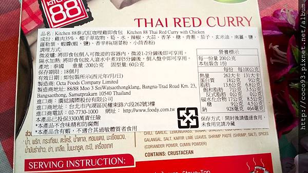 還好發現網路上有賣一家知名的食品代理商「廣紘國際」有著名的泰國料理調理包品牌~「Kitchen 88」,馬上手滑訂了一些來"解癮",順便也買了不辣的印度咖哩給老爺少爺吃