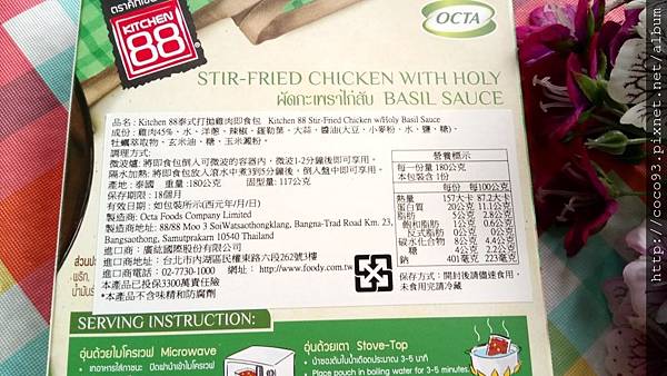 ★商品成分:雞肉、水、辣椒、羅勒葉、醬油、大豆油、糖、牡蠣萃取物、大蒜、洋蔥、玉米澱粉