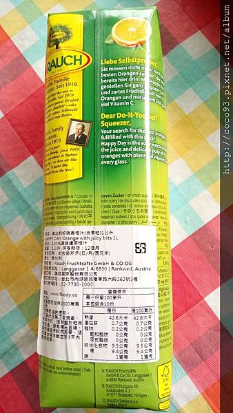 <奧地利RAUCH好喝香橙汁(含果粒)>真的有果粒,喝起來香濃又甜,我都加開水,以一半的水加入,來稀釋果汁,口味比較不甜