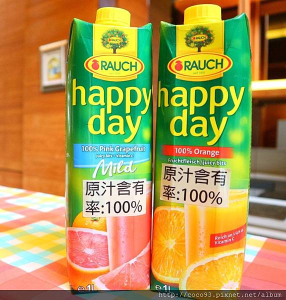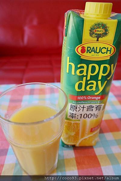 三款比較起來,老爺少爺較愛喝<奧地利RAUCH好喝香橙汁(含果粒)>,因為比較甜;而我都愛喝耶!
