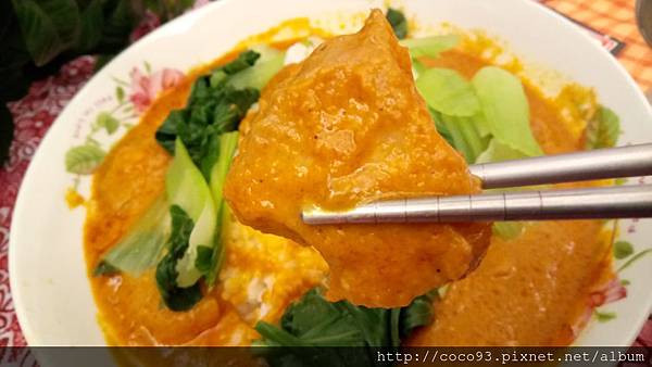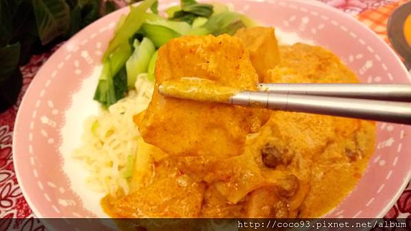 不辣的印度咖哩味,奶香混合椰汁香夾雜著花生味,蓋過多數的香料味,又是偏甜,但小孩愛吃呢