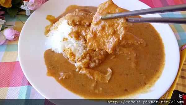 吃起來有很濃的奶味,不辣,口味和<Kitchen 88泰式沙嗲雞即食包>有點像,都是偏甜口味,吃得到腰果碎末