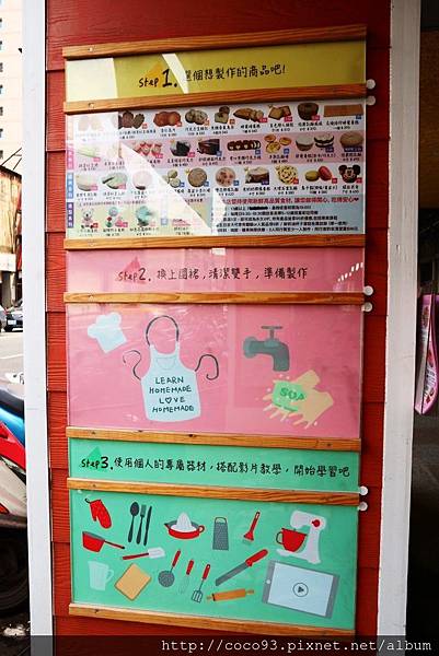 門口標示著獨家創新的「自主學習」烘焙步驟