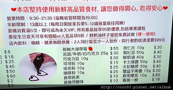 價位合理~盡情使用教室裏一切用品及免費飲料糖果,並能把和市面上等值的甜點帶回家享用,十分划算呢!