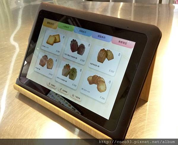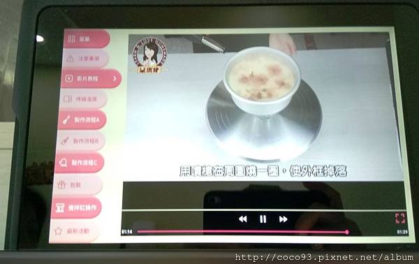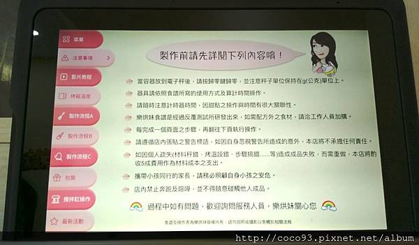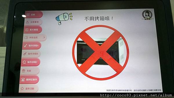 助教幫我打開上方手作料理台的平板電腦,觀看全程的步驟,這套線上烘焙教學系統