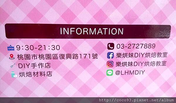 外盒上還有『樂烘妹 DIY 烘焙教室』詳細的資訊