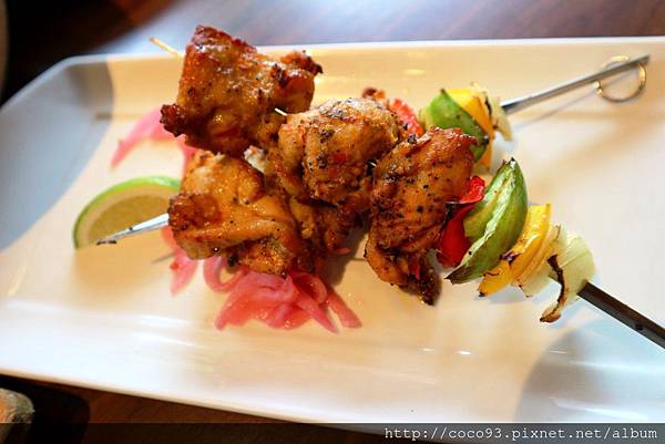 <香烤雞肉串燒>味道吃起來有著墨西哥的香料味,雞肉口感緊致,配啤酒吃會很唰嘴(未成年請勿飲酒)