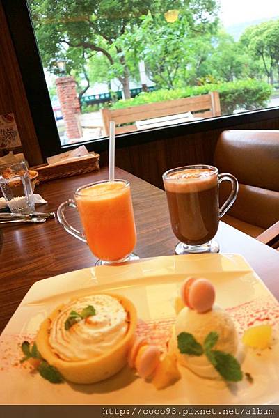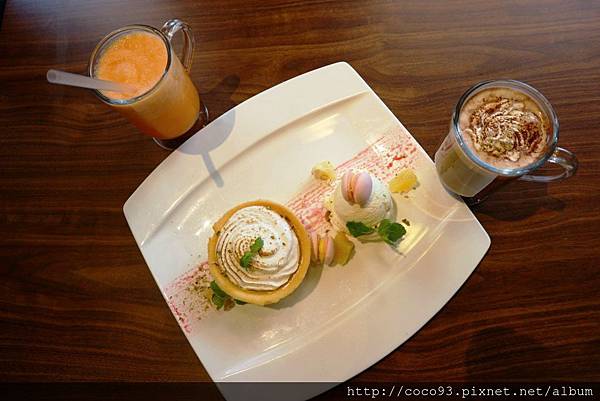 "螞蟻父子倆"很期待的甜點來嘍~<特製雙人檸檬塔/綜合蔬果汁/熱特調巧克力>