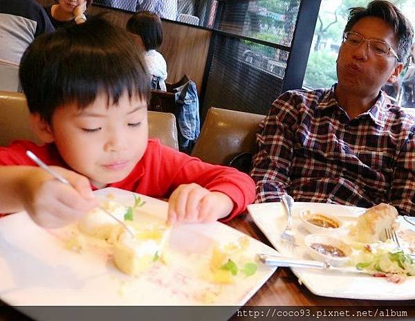 我才咬一口,就被恩恩整盤搶去吃,老話一句:「小子很識貨!」