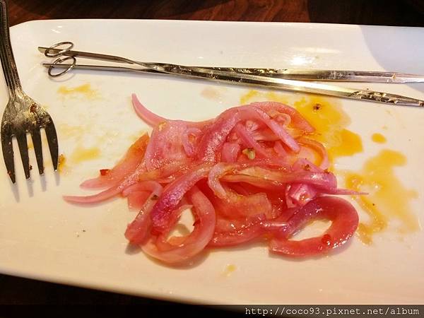 <醃洋蔥> 紅洋蔥天然的粉紅色真美!味道酸甜,已無洋蔥特有的嗆味,飯後吃特爽口