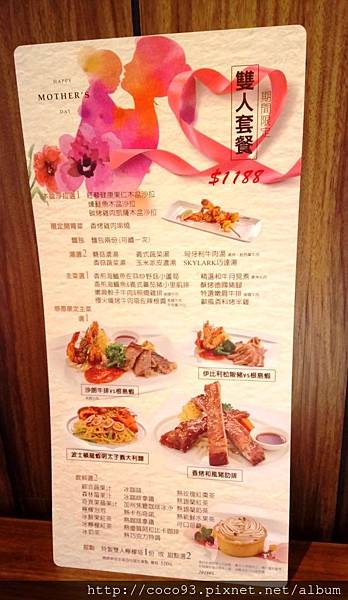 點了母親節優惠活動【5/1~5/31期間限定感恩雙人套餐】$1188,一次可以吃到高檔的和牛、松板豬、根島蝦,很超值!