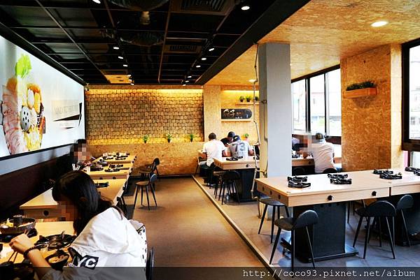 『麻豆子健康湯鍋-龍潭店』裝潢走目前流行的<現代x微工業x微文青風>,空間寬敞,乾淨明亮
