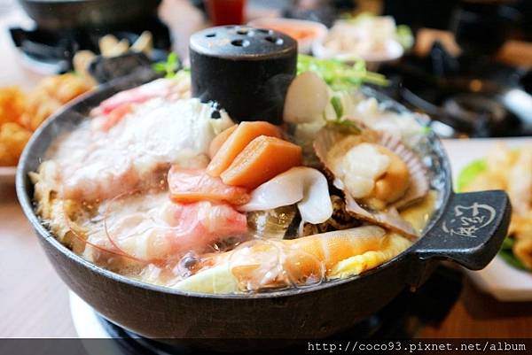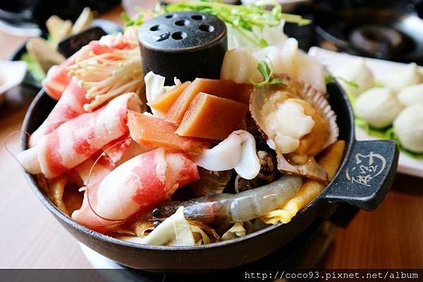 店員推薦的招牌<海陸什錦鍋-牛>$178,料多好豐富~有草蝦、扇貝、花枝、魷魚、蛤蜊等