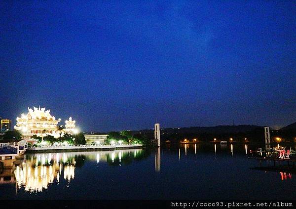 吃太撐,繼續沿著「龍潭觀光大池」散步到停車場,夜景很美,不少情侶在這裡散步談心呢