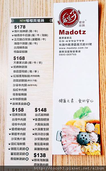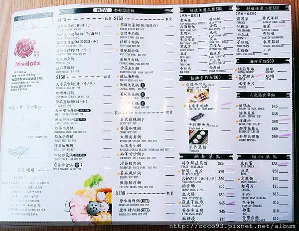 背面列出所有火鍋湯頭,最貴也才$178!讓我真想吃遍每一種(目前只吃過其中10種,因為常常只點愛吃的口味)