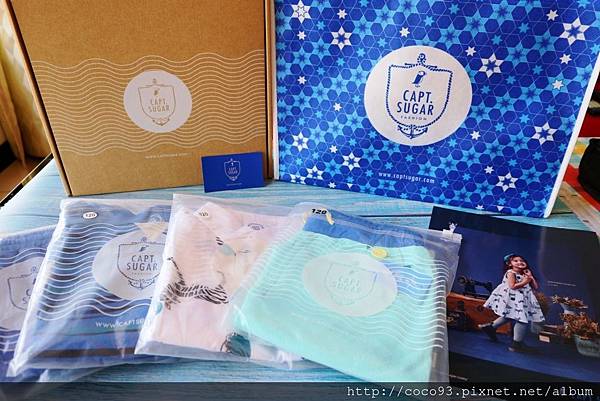 『Capt.Sugar凱普頓時尙童裝』附有別緻禮盒及亮眼藍星的品牌LOGO提袋,每一件又個別以夾鍊袋裝著,精心的包裝,送禮好看又大方