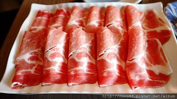 <梅花豬>口感紮實,鮮嫩味美,沒有豬肉腥味,肥瘦適中,搭配酸白菜湯底,增加湯頭甜度