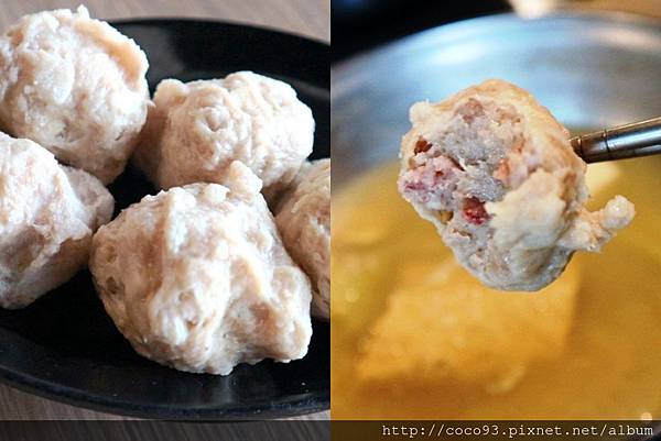 招牌~<手工蝦仁漿>看得出含有滿滿的蝦子,隨手挖一球,煮熟後都能吃到1~2隻全蝦,十分鮮甜可口