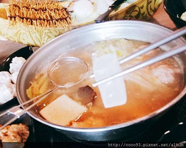 <昆布高湯底>喝起來昆布味道較重,<酸白菜湯底>微酸,配上培根豬恰到好處,不會因為太酸而喧賓奪主,讓培根豬失去原有的甜美