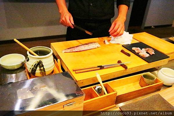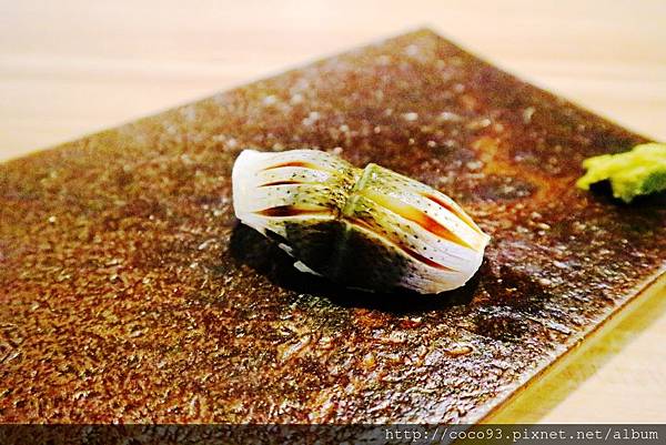 就在店外坐看招牌"鮨處"二字,原意是~鮨,即"すし", <魚+旨>,正是魚介類的旨味展現,也是運用到旨的堆疊,進而使風味得到提升的手法