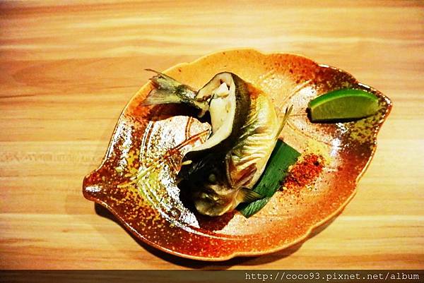 烤香魚,烤的火侯控制得好,香魚表面無任何烤焦,魚肉細緻、沒有魚腥味,入口後在口中散發淡淡的烤魚香氣