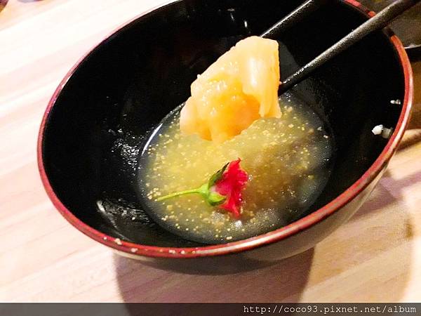 因為這次真的是"無菜單"日本料理,現場完全沒有紙本菜單可看,完全由老闆出什麼料理,我們就吃什麼,這樣才有期待與驚喜!