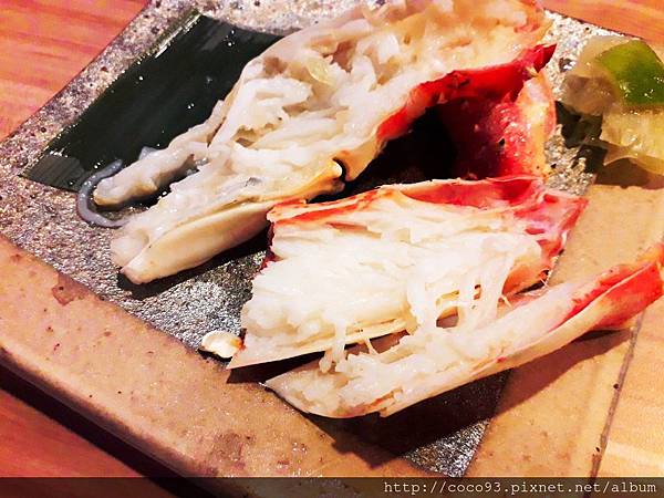 鱈場蟹腳肉,肉質超細嫩,香濃甜美汁多,非常新鮮,因為吃蟹會過敏的我,竟沒發作,很想再吃一隻......