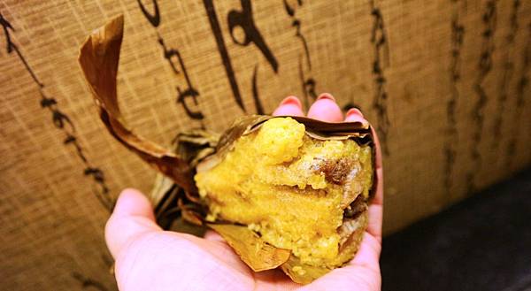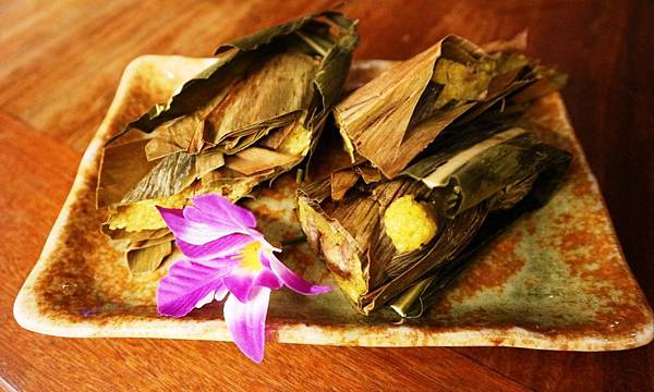 獵人便當<排灣小米吉拿富>用小米粉包裹碎肉末,是排灣族與魯凱族常吃的食物