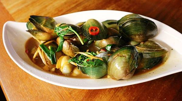 <爆炒田貝>$220,田貝超大顆,比50元硬幣大,而且貝肉好肥厚,吃進嘴裏立馬爆出鮮甜海味汁,適合配啤酒吃,會很過癮!